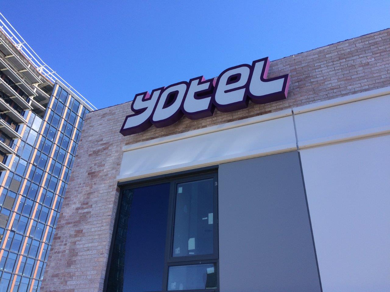 Metro Sign & Awning project managers worked with the City of Boston and YOTEL developer Boston Global Investors (BGI) for more than a year in advance before it was announced that the unique hotel would open in Boston. From providing material samples for review and approving shop drawings to working to obtain proper permits, Metro’s sales team and project managers handled thousands of details to ensure all signage was in compliance with ADA and city requirements – as well as ideally conveying the Yotel brand throughout the building, all well before the hotel’s grand opening.
